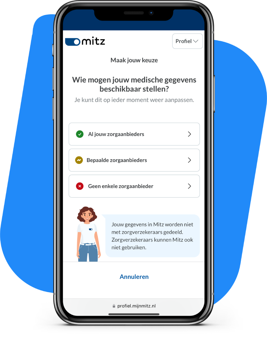 Via de online toestemmingsvoorziening Mitz kunt u zelf uw toestemmingskeuzes vastleggen en beheren.